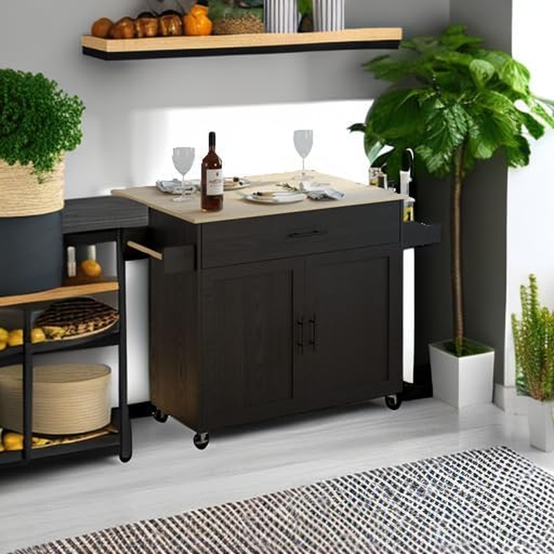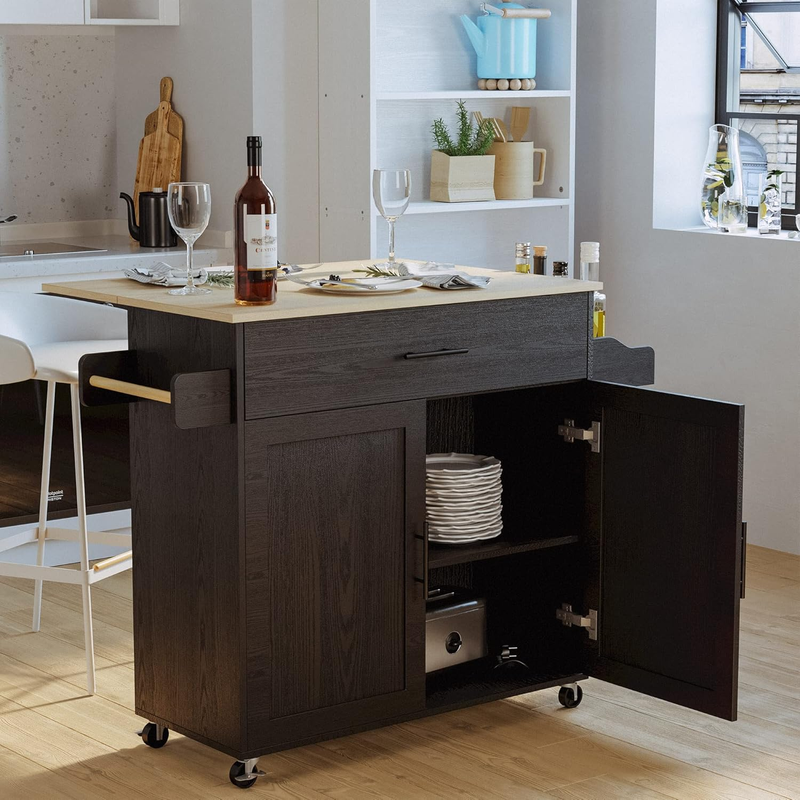 - Rolling Kitchen Island Table on Wheels with Drop Leaf, Storage Cabinet,