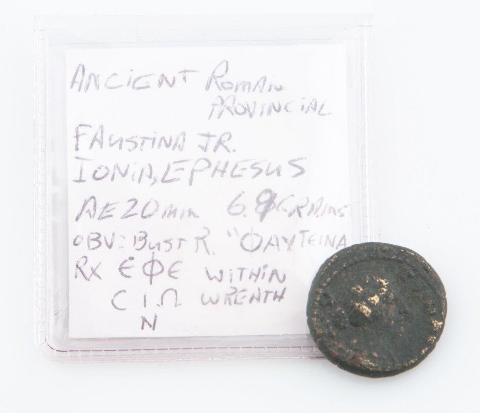 - Roman Provincial AE20 Coin Ionia Ephesus VF Faustina Younger Marcus Aurelius