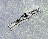 The hammer is broadly lozengiform in plan, rectangular in profile and square in section at the striking face, Set at the right angle to the haft. The eye is circular, set in a diamond-shaped expansion