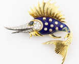 - Rondette 18k Yellow Gold Sailfish Brooch Diamond Blue Enamel and Sapphire