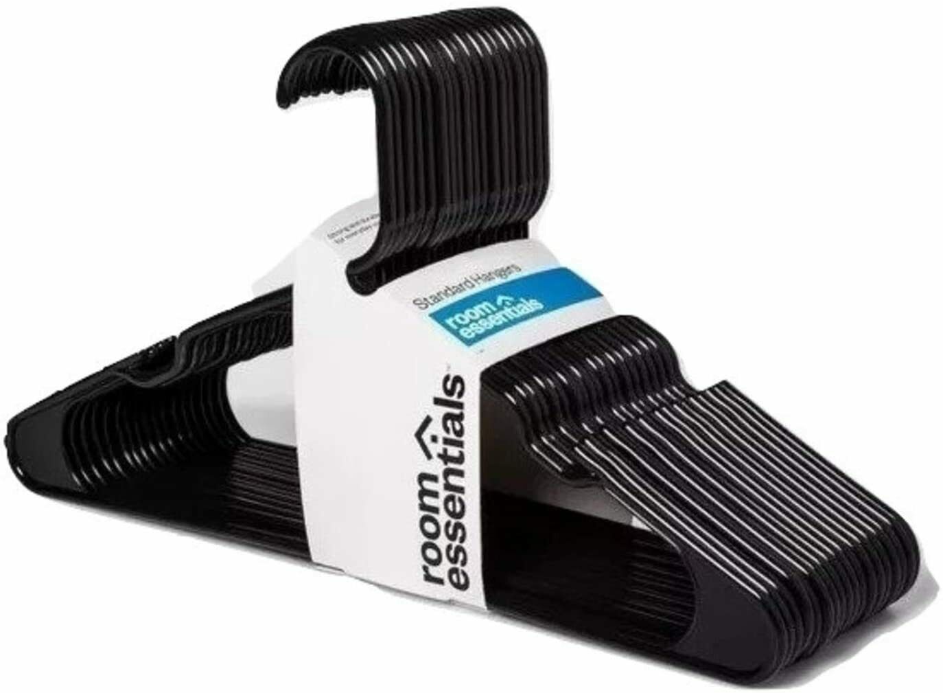 Bring organization to your closet with the 18-Pack Hangers from Room Essentials. Designed from a durable and sturdy material to withstand the weight of heavier clothes, these clothes hangers are great for hanging coats, shirts, sweaters and other winter clothes, as well as shirts, tops or dresses. Featuring easy-hang tabs, these hangers help prevent clothes from slipping and falling off, ensuring your wardrobe stays neatly and effectively organized at all times.