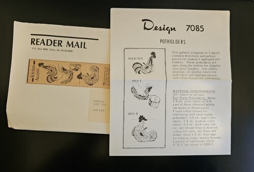 - Rooster & Hen Potholders Vtg 1989 Mail Order Sewing Pattern Design 7085 UNCUT