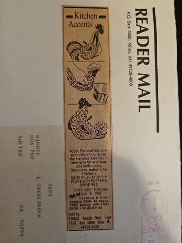 This is an UNCUT Original Pattern that was only available via mail order. It includes the original advertisement--which may or may not be taped to the envelope or included inside.