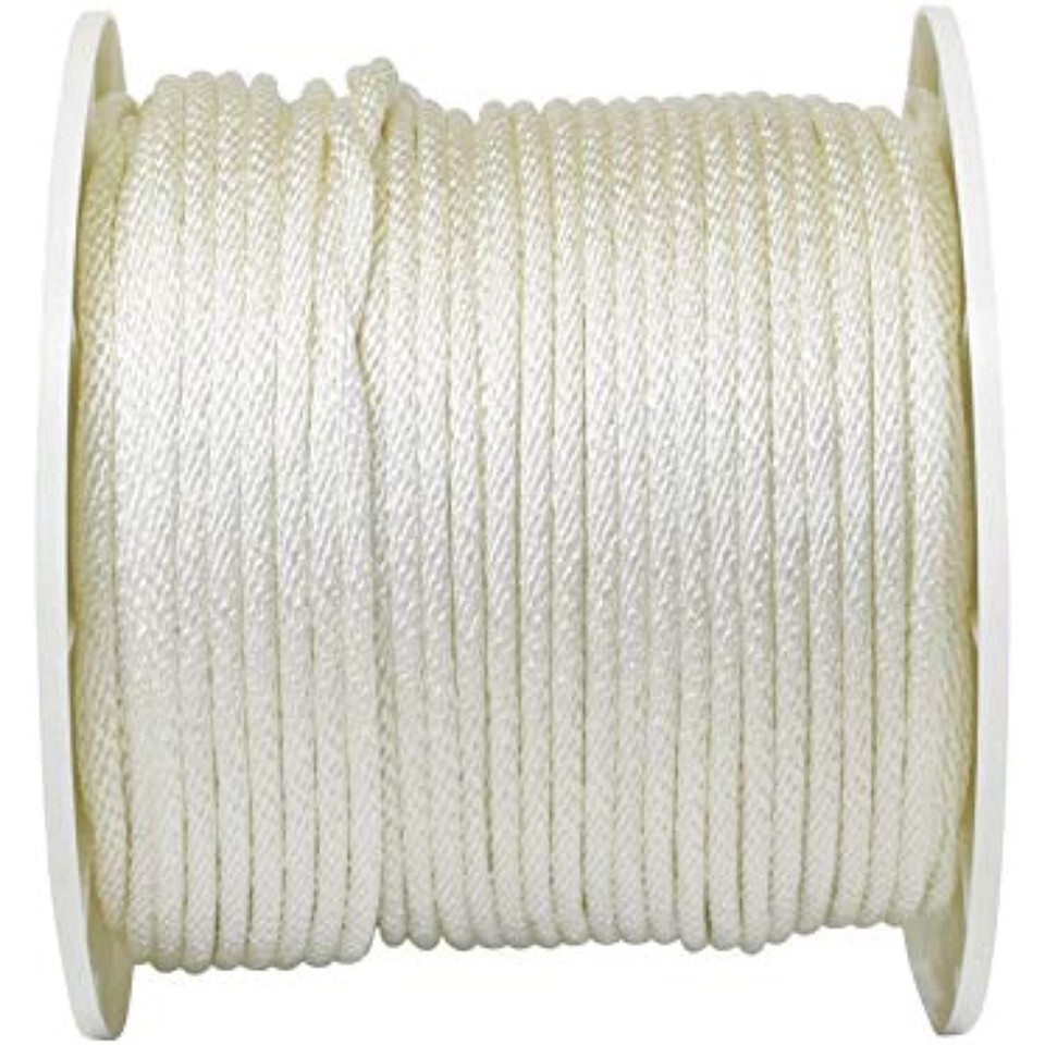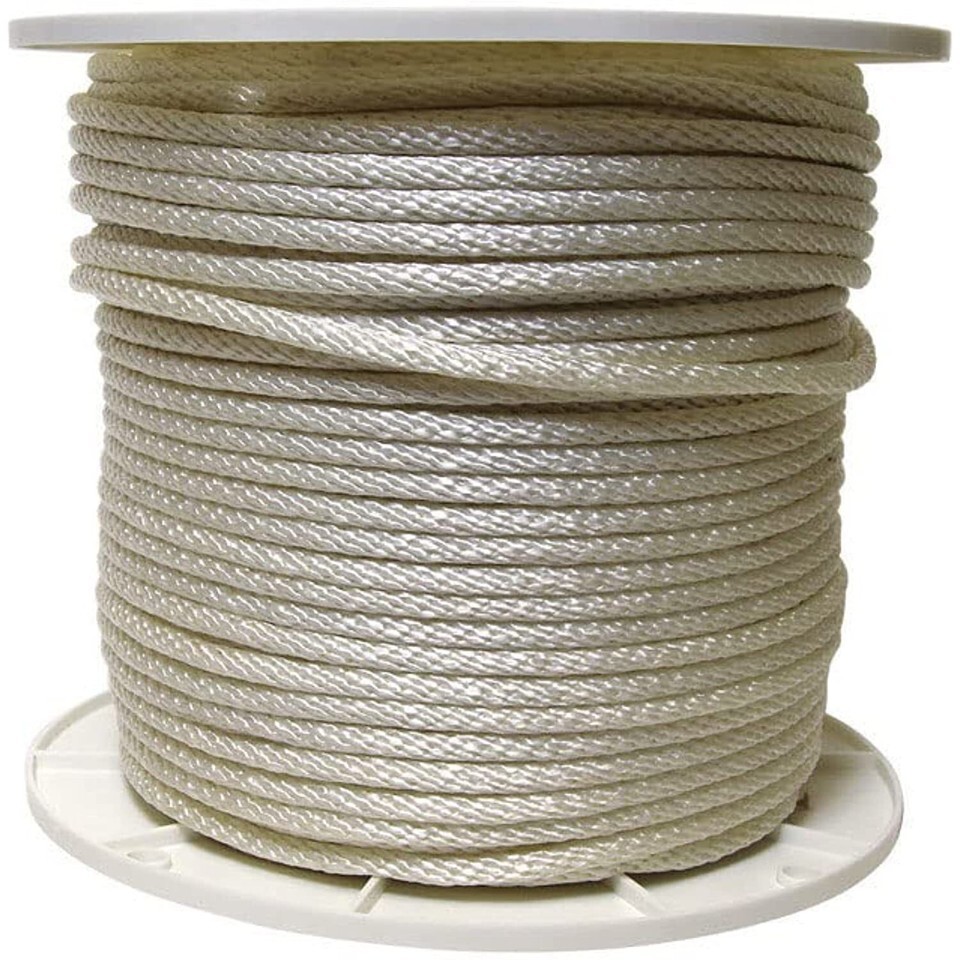Brand Name: Wellington; Length: 500 ft.; Rope Configuration: Solid Braided; Material: Nylon; Product Type: Rope; Diameter: 5/16 in.; Color: White; Weather Resistant: Yes; Load Limit: 113 lb.; Floats in Water: Yes