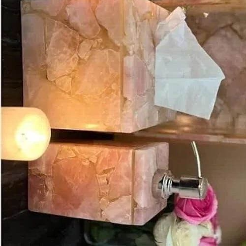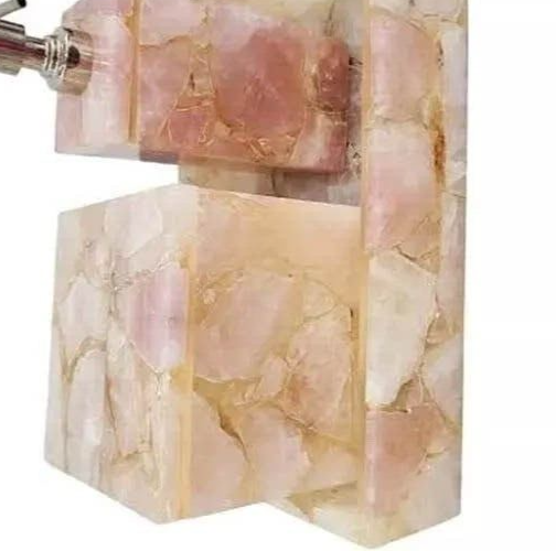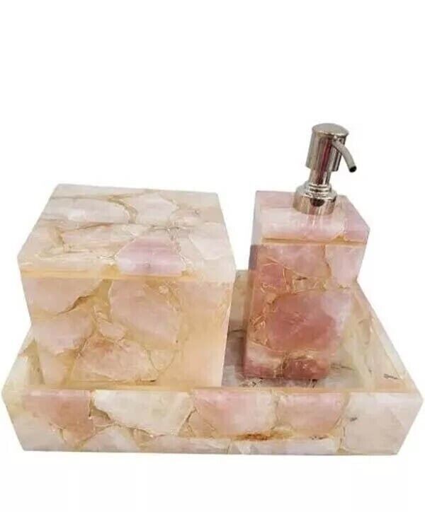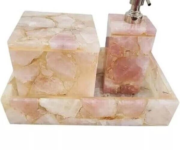- Rose Quartz Stone Bathroom Accessories Set Vessel Soap Dispenser with 3 pcs