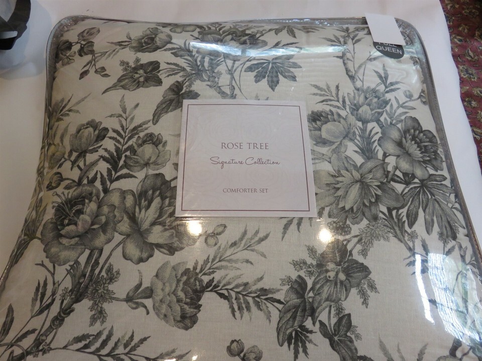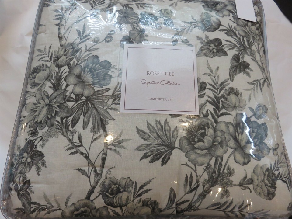 Rose Tree Signature Toledo 3P Queen comforter shams Jacobean Floral Grey Cream