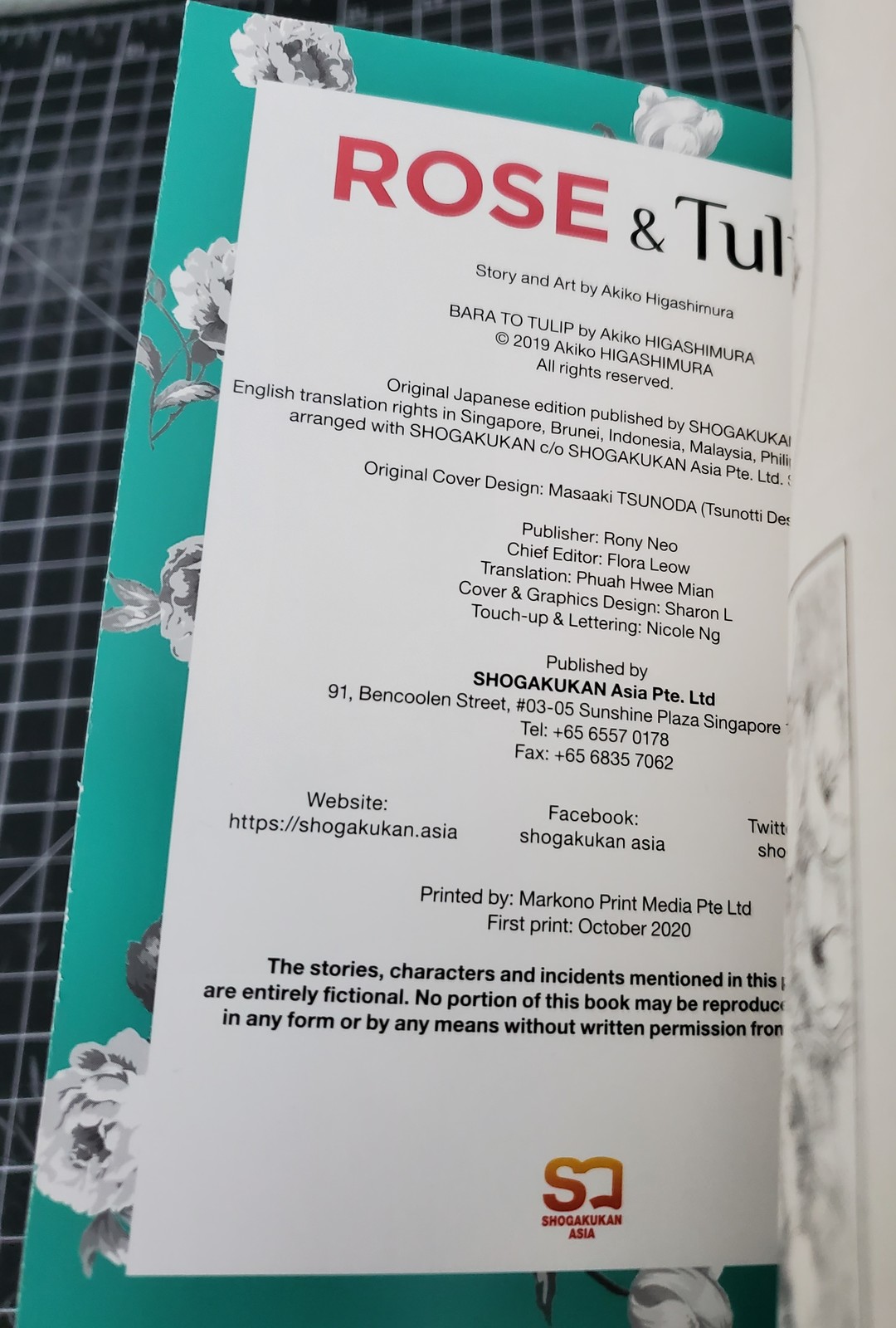 This is for Akiko Higashimura's manga, Rose and Tulip (Bara to Tulip). This is as released by Shogakukan Asia in English.