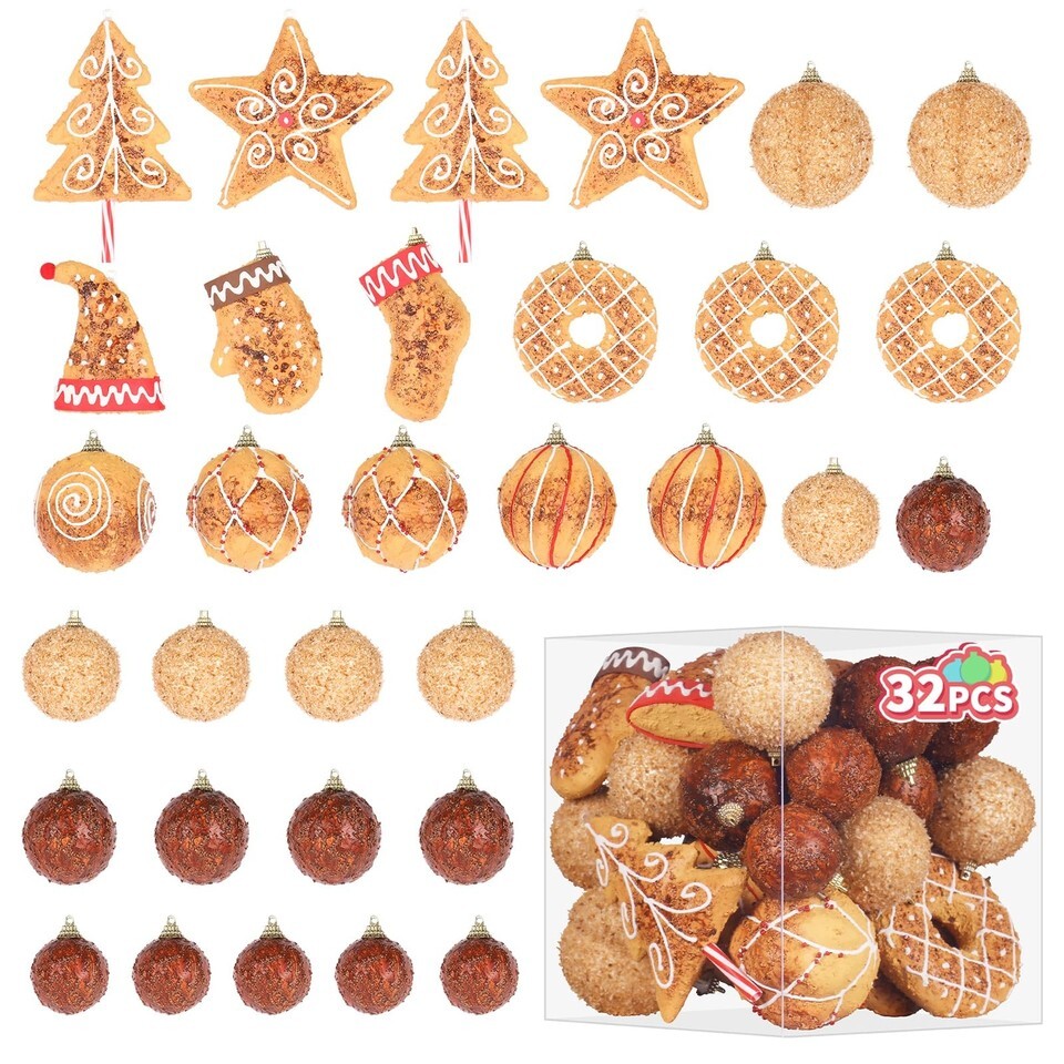 RoseCraft Christmas Ball Ornaments Set, 44PCS Shatterproof Christmas Tree Hanging Gingerbread Decorations Assortment, for Indoor Home Holiday Party Xmas Decor.