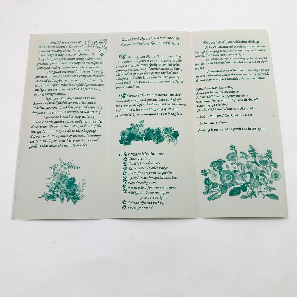 - Rosewood Guest Cottage Bed & Breakfast Inn Brochure Eureka Springs AR