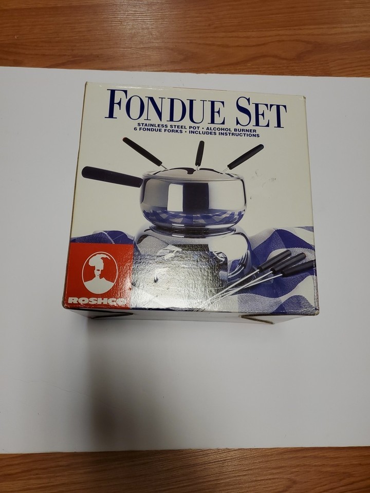 - Roshco Stainless Steel Fondue Set w/ 6 Dishes & 12 Forks – Model 58903