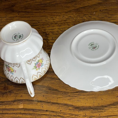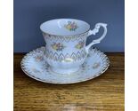 Rosina Fine Bone China Teacup Saucer Set Floral Gold White England