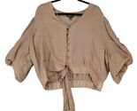 - Rouge Collection Brown Tie Waist Crop Top Peasant Blouse Women's Plus Size 2X
