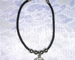 It is COOL THICK BLACK PARACHUTE CORD WITH 4 SILVERTONE BEADS AND A PEACE SIGN PEWTER CHARM DANGLE