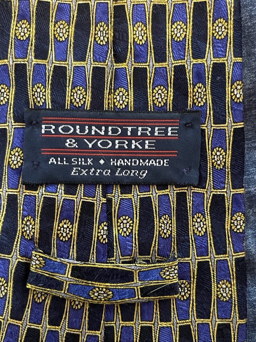 - Roundtree & Yorke, 100% Silk, Extra Long Men’s Tie Blue And Gold