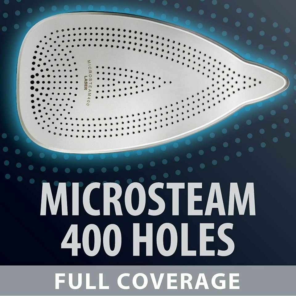 The iron?s Microsteam stainless-steel soleplate provides 400 steam holes for even steam distribution and includes an ultra-thin silicate coating for scratch-resistant strength and nonstick