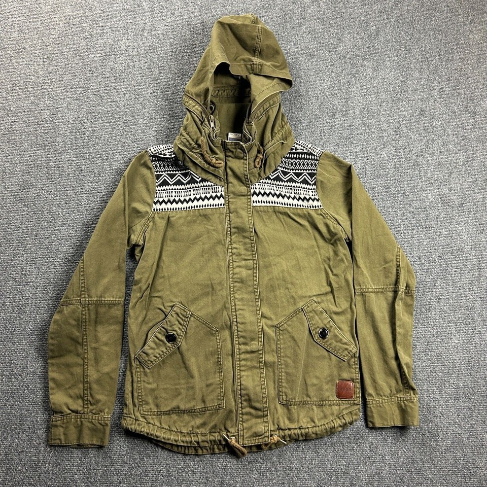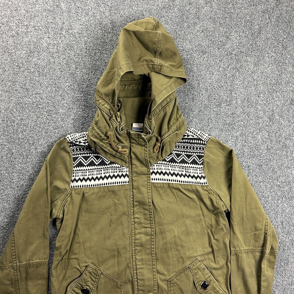 - Roxy Jacket Womens Small Green Full Zip Hooded Military Aztec Navajo Distressed