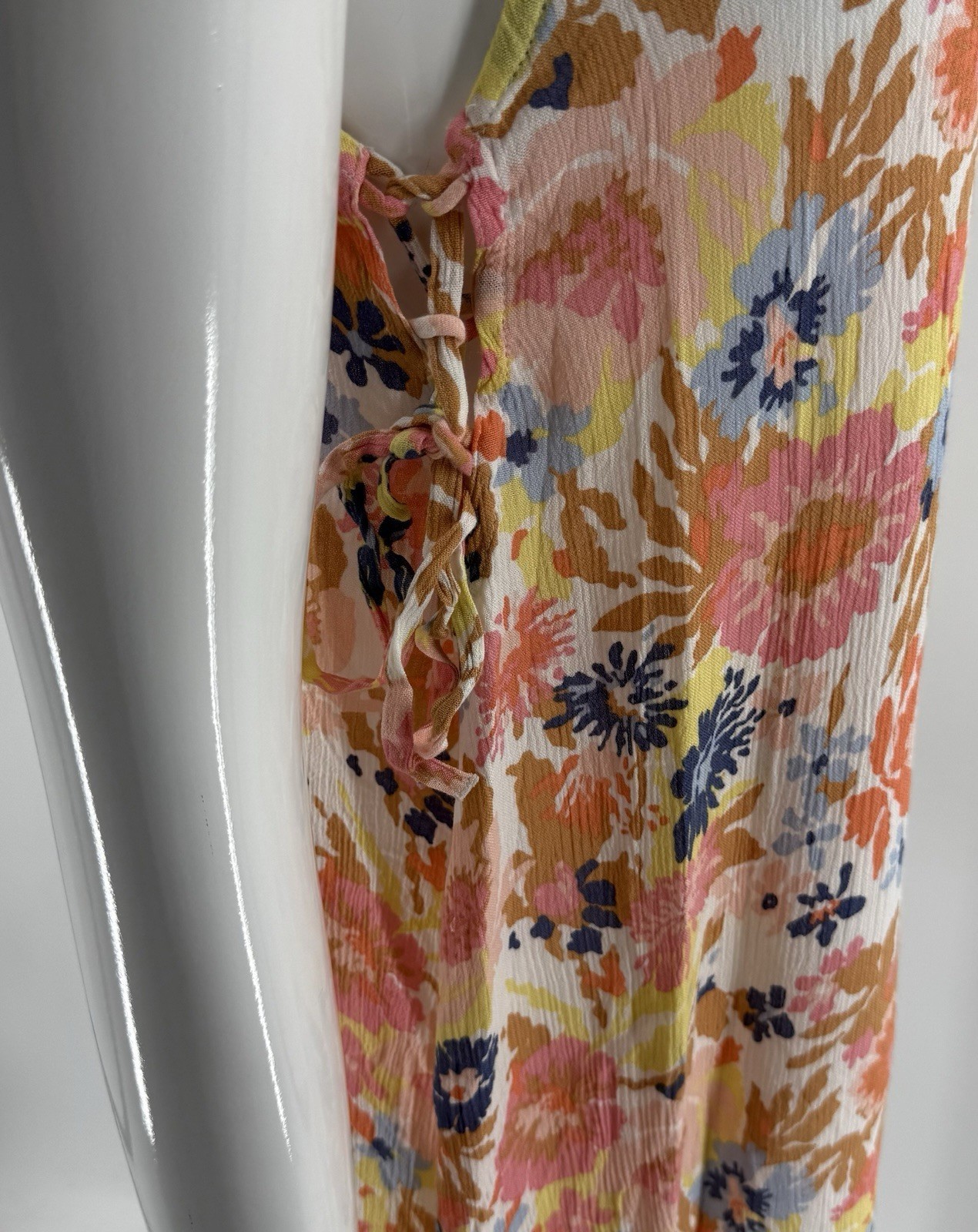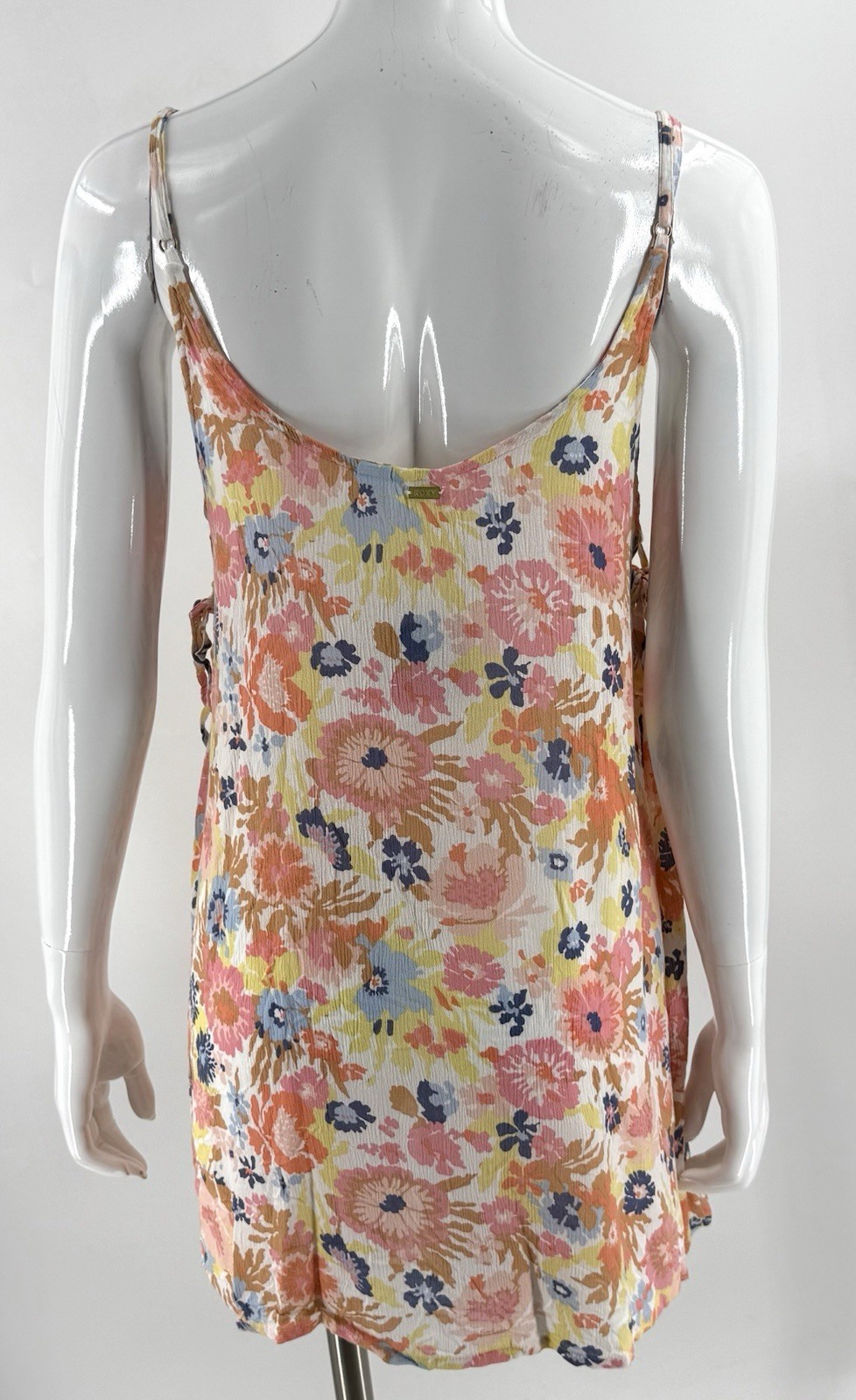 Roxy Swimsuit Coverup Dress Sz Medium Pink Blue Floral Lace Up Sides Womens NEW