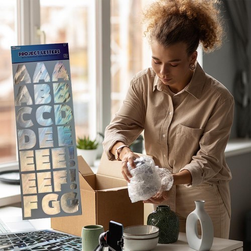 Make your messages shine with the crisp brilliance of Royal Brites Self-Adhesive Alpha-Numeric Holographic Silver Foil Characters. This 115-piece set includes die-cut letters, numbers, and punctuation marks crafted from metallized label stock with a silver holographic finish. Each 2 character is backed with strong adhesive for fast, peel-and-stick useno glue needed. Perfect for posters, banners, scrapbooks, and decorative signage, these characters adhere smoothly to most surfaces while remaining repositionable if layout adjustments are needed. The reflective finish catches the light from every angle, creating depth and attention-grabbing detail. From school displays to party boards and craft projects, Royal Brites Holographic Silver Foil Characters bring elegance, impact, and ease to every creative moment.