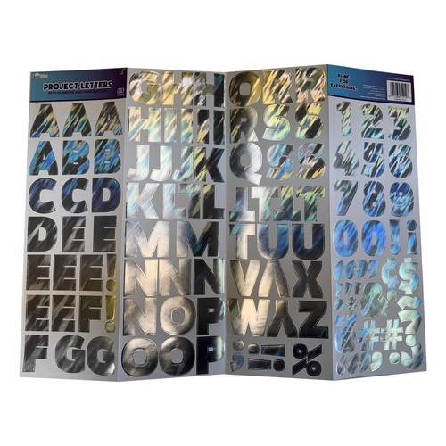 - Royal Brites Self-Adhesive Alpha-Numeric Holographic Silver Foil Characters, 2”
