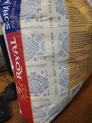 - Royal Organic Sona Masoori Medium Grain White Rice, 20 lb Bulk Bag