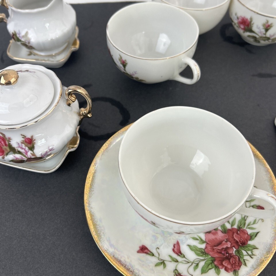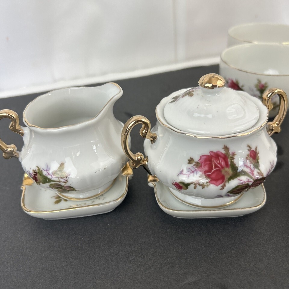 Royal Sealy Japan Vtg Tea Rose Gold 4 Cup 1 Saucer Sugar Cream 2 long Plates
