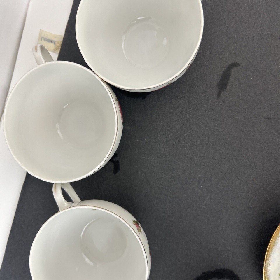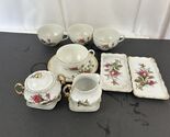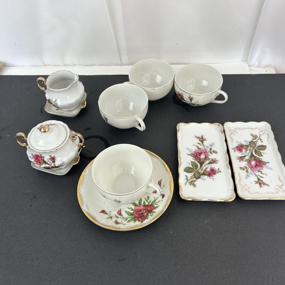 - Royal Sealy Japan Vtg Tea Rose Gold 4 Cup 1 Saucer Sugar Cream 2 long Plates