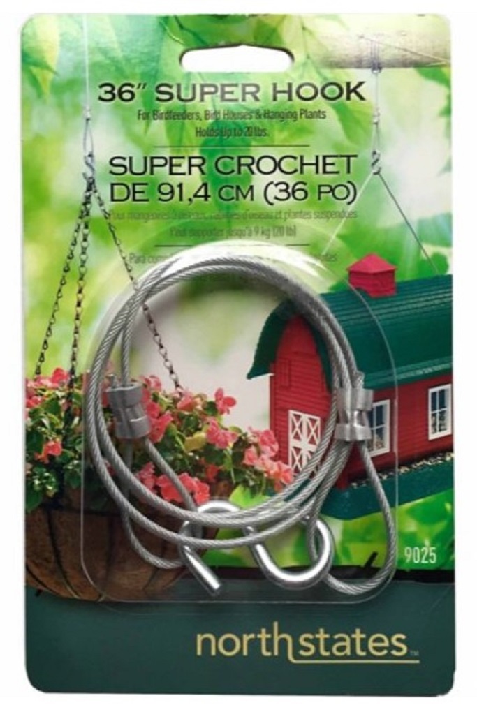 Size of the bird feeder hanger: 36 in. Durable steel construction Use to hang bird feeders, hanging plants, or other decorations The Royal Wing North States Superhook Bird Feeder Hanger is a 36-in. steel cable designed for hanging bird feeders or decorative hanging plants. Made from durable weather-resistant steel, this feeder hanger is a reliable choice to help get you the perfect setup for your yard.