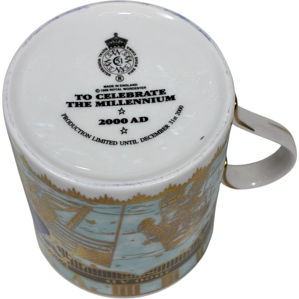 MADE TO CELEBRATE THE MILLENIUM 2000 AD. The PRODUCTION of the MUGS was limited until DECEMBER 31st 2000 The BASE each of the MUGS is clearly marked as follows-: ROYAL WORCESTER FINE BONE CHINA MADE IN ENGLAND 1998 ROYAL WORCESTER TO CELEBRATE THE MILLENIUM 2000 AD PRODUCTION LIMITED UNTIL DECEMBER 31st 2000 The MUGS have a SPACE THEME.