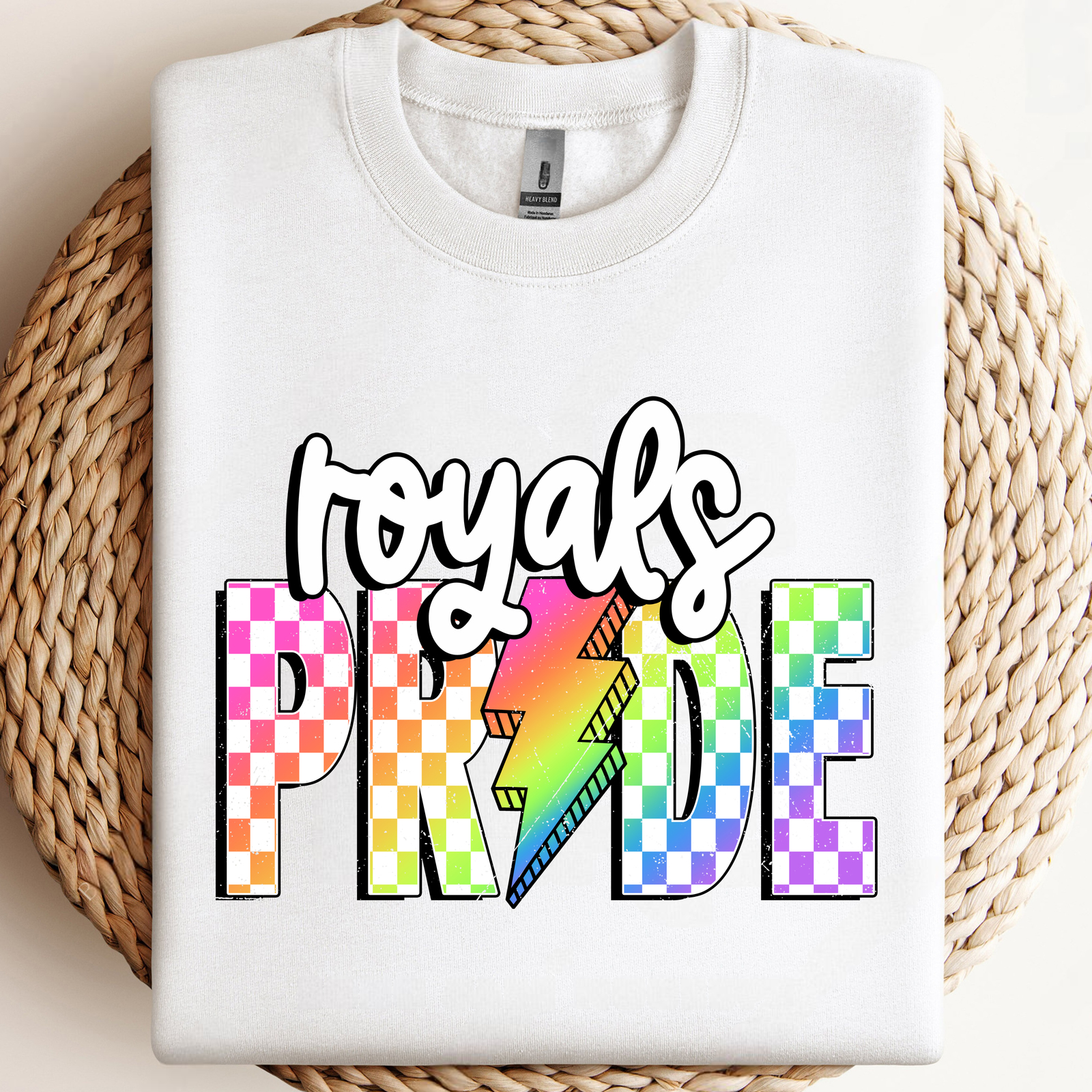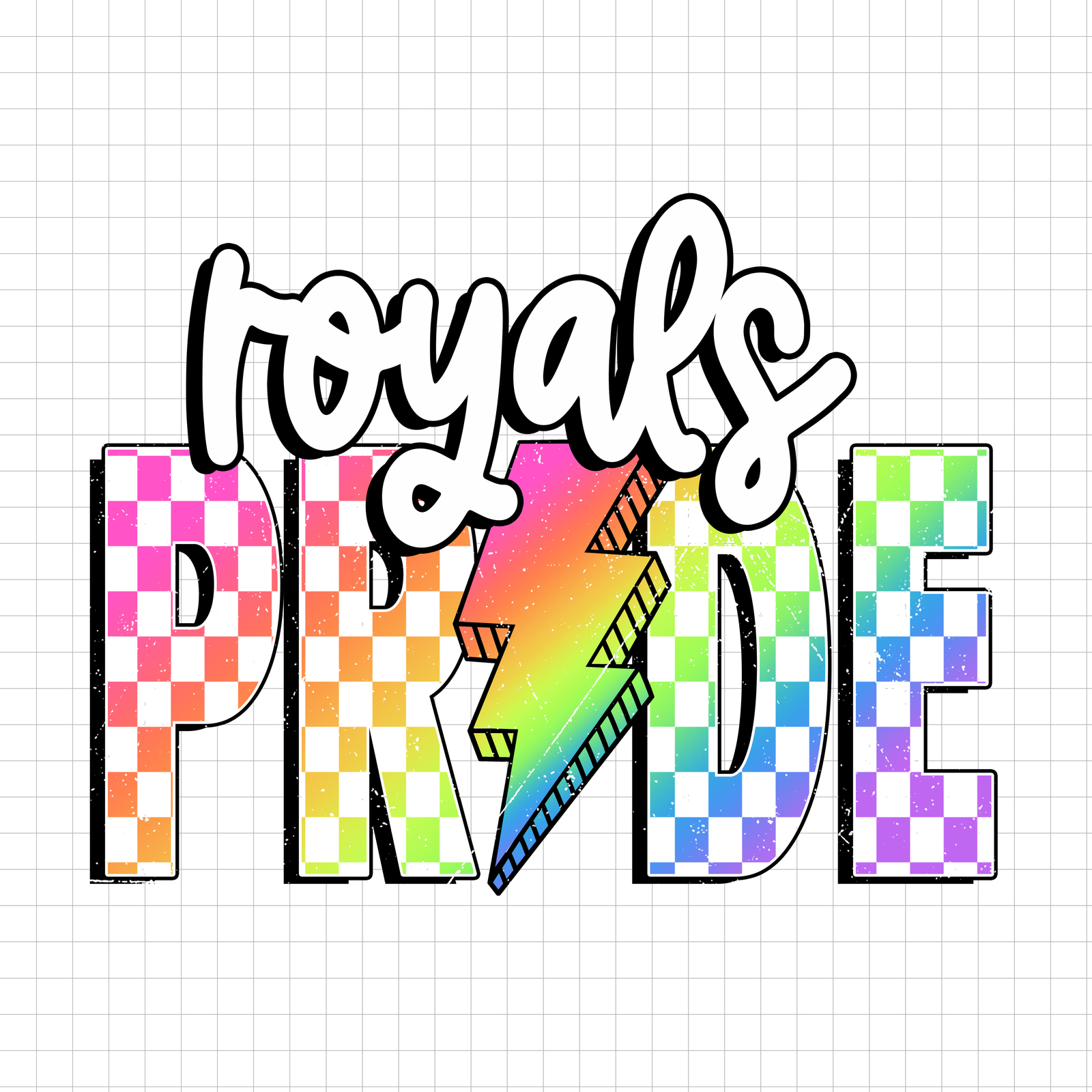 Royals Pride PNG, Checkered Royals PNG, Lightning Bolt Design, Neon Mascot PNG, Trending Design