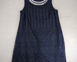 Roz & Ali Navy Cut-Out Lace Overlay Shift Dress Sz 14 Woman Rhinestone Neckline