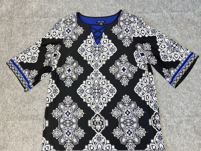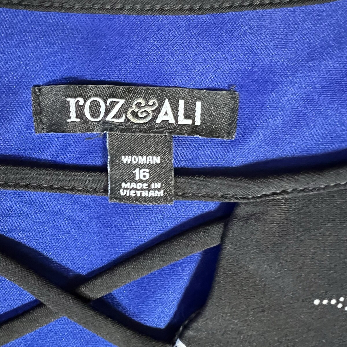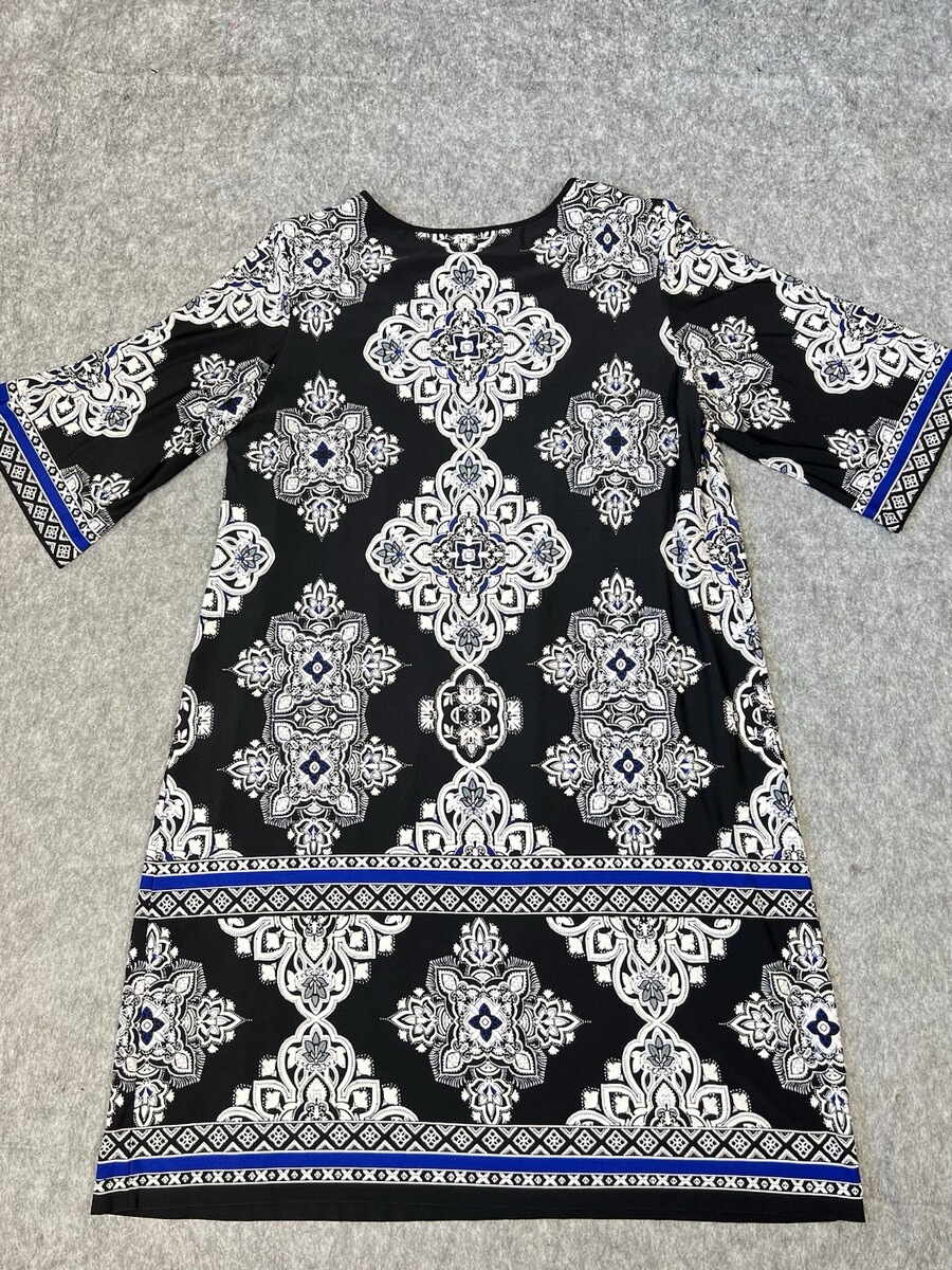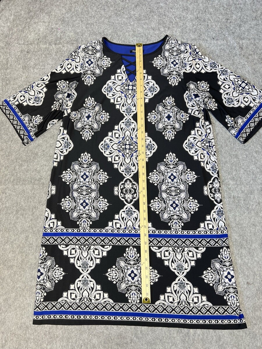 - Roz & Ali Womens Sz 16 Dress Black Blue White Geometric Print Lined Shift Tunic