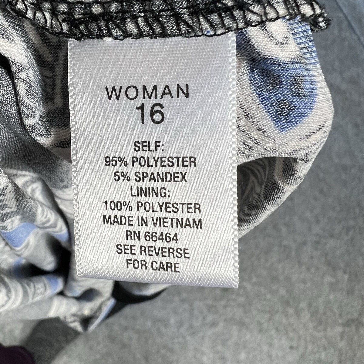 Roz Ali Women?s Size 16 Dress Black Blue White Geometric Print Lined Shift Tunic