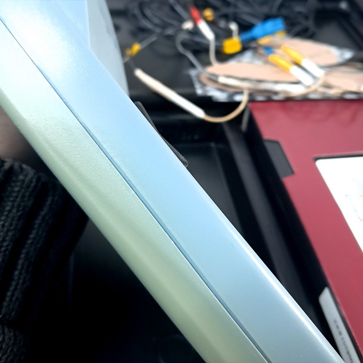 Includes tens unit, pads, VHS, and case. Tens unit has some yellowing as shown.