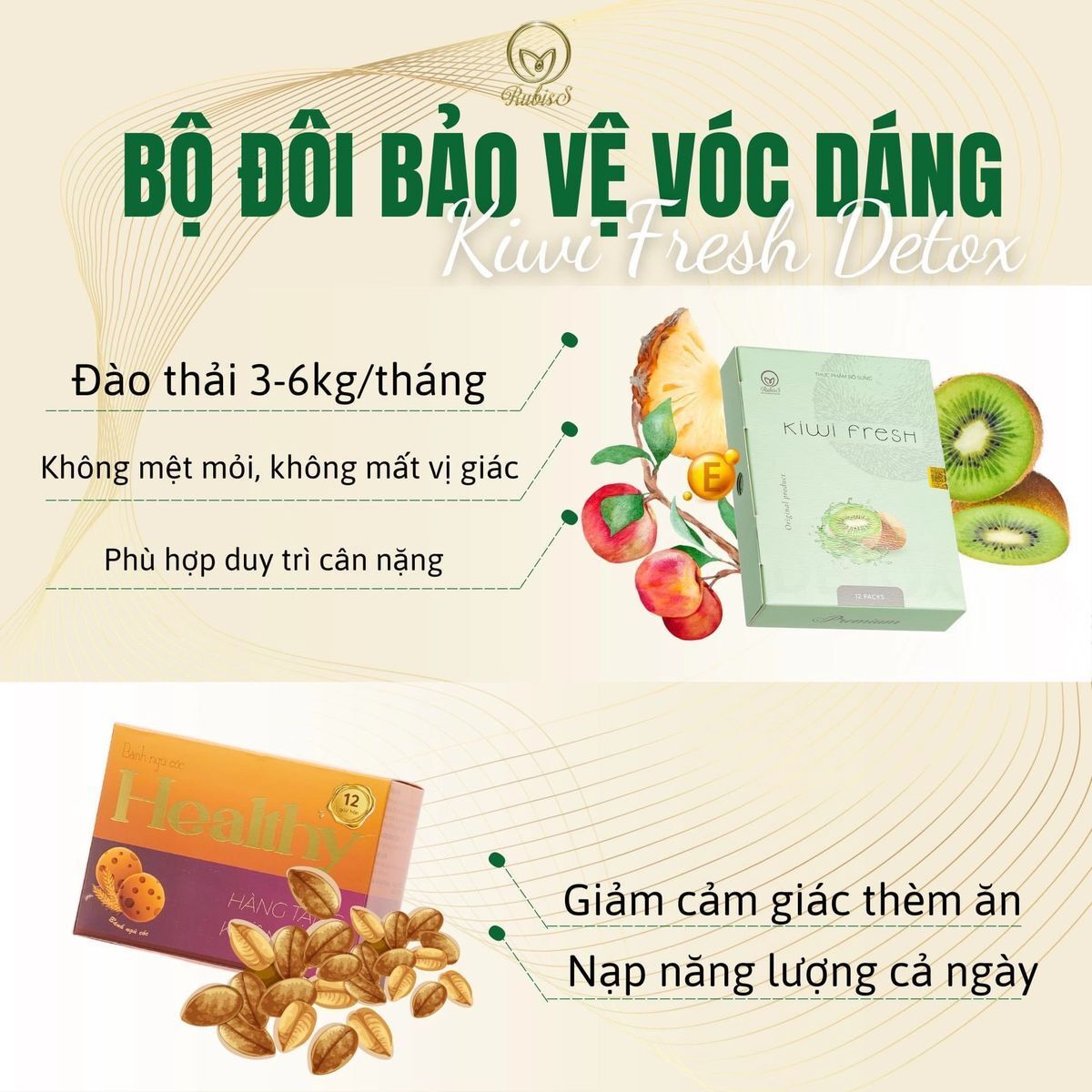 - Rubiss Kiwi Fresh Detox Giam Can With FREE Box Of 12 Goi Banh Ngu Coc