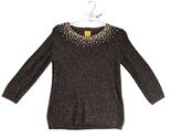 Ruby Rd Metallic Gold Rhinestone Black Top Women's M 3/4 Sleeve