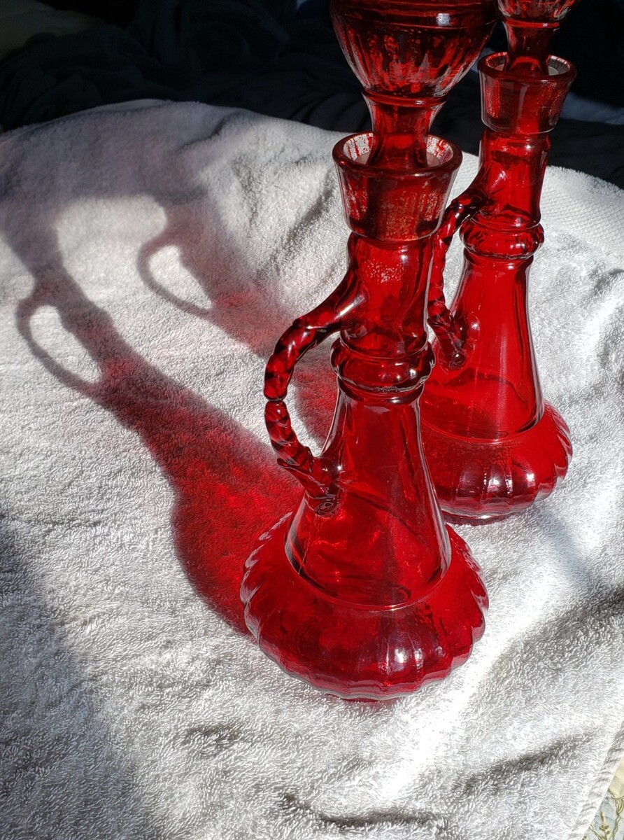 Set of Two (2) Vintage Ruby Red Glass Genie ( I Dream of Jeannie ) Bottles