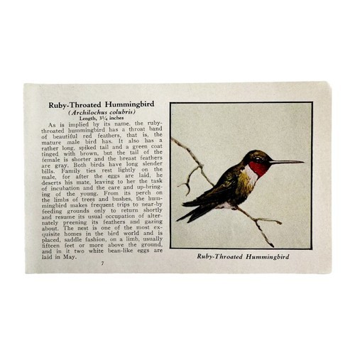 - Ruby Throated Hummingbird Bird Print 1931 Blue Book Birds Americal Art PCBG21D