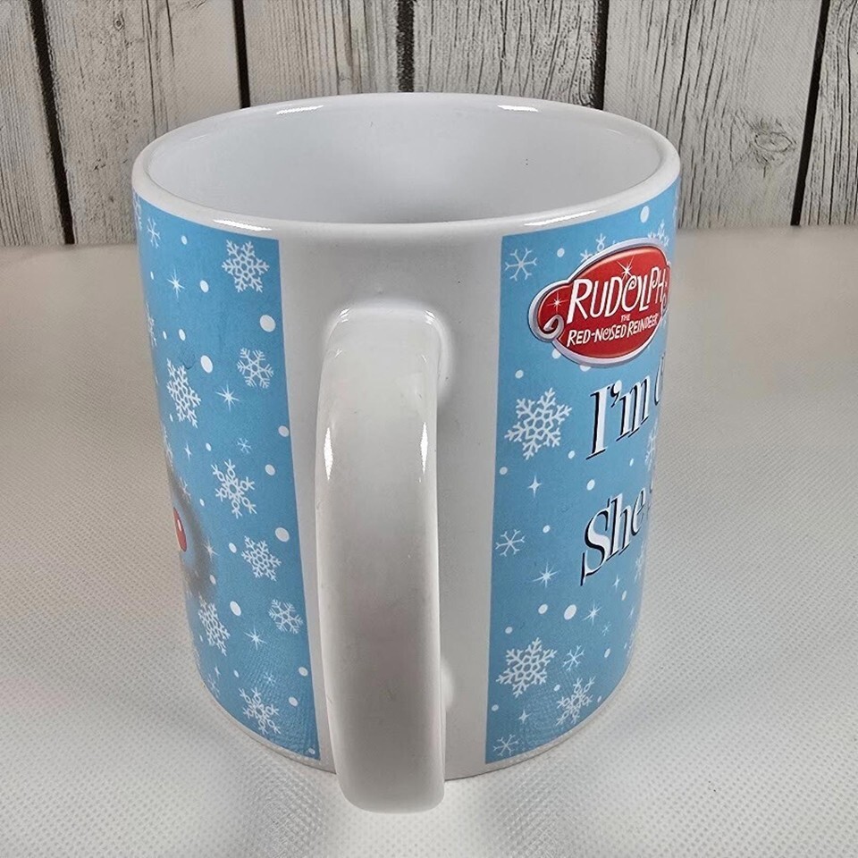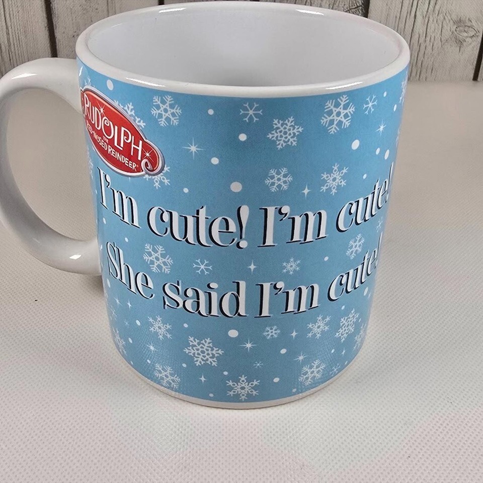 Bring a dash of North-Pole whimsy to your cocoa ritual with this oversized Zrike mug featuring Rudolph proudly proclaiming, ?She said I?m cute!? The generous bowl holds plenty of coffee, cocoa, or soup while the bright cartoon graphic keeps holiday spirits high season after season. Collectible Rudolph drinkware like this routinely fetches the mid-teens , making it a fun, affordable gift or an easy sell-through stocking stuffer.