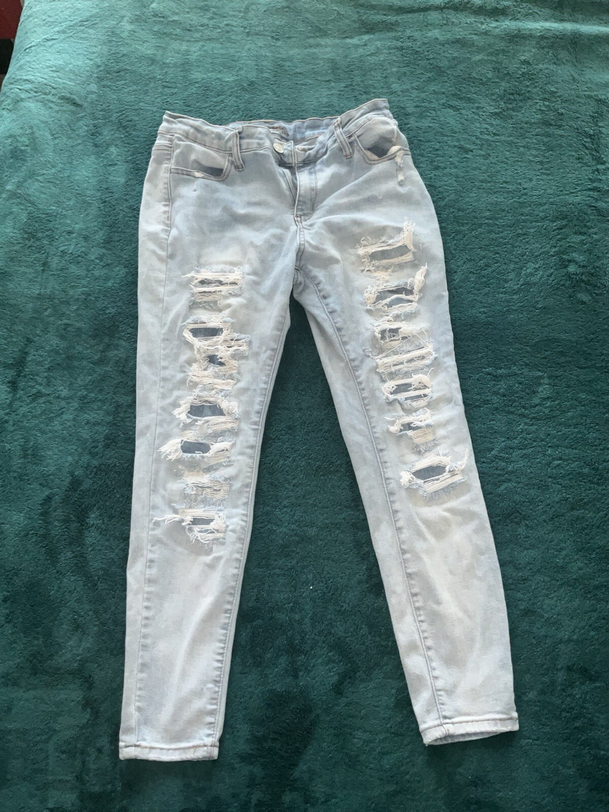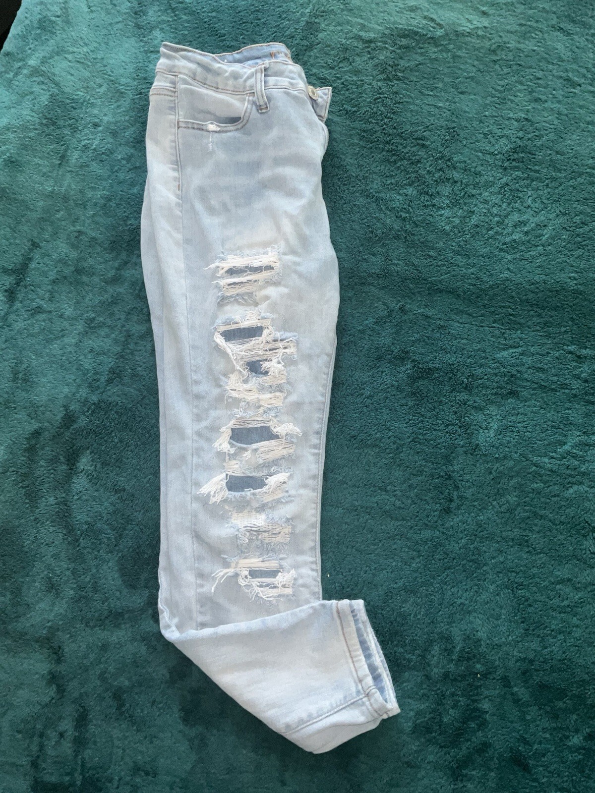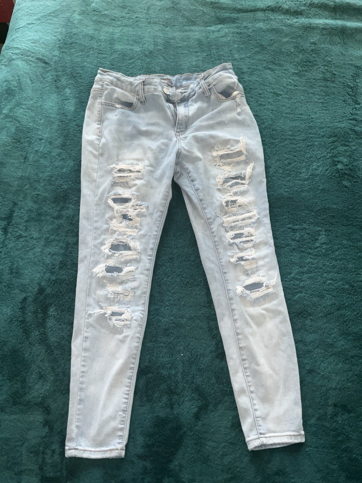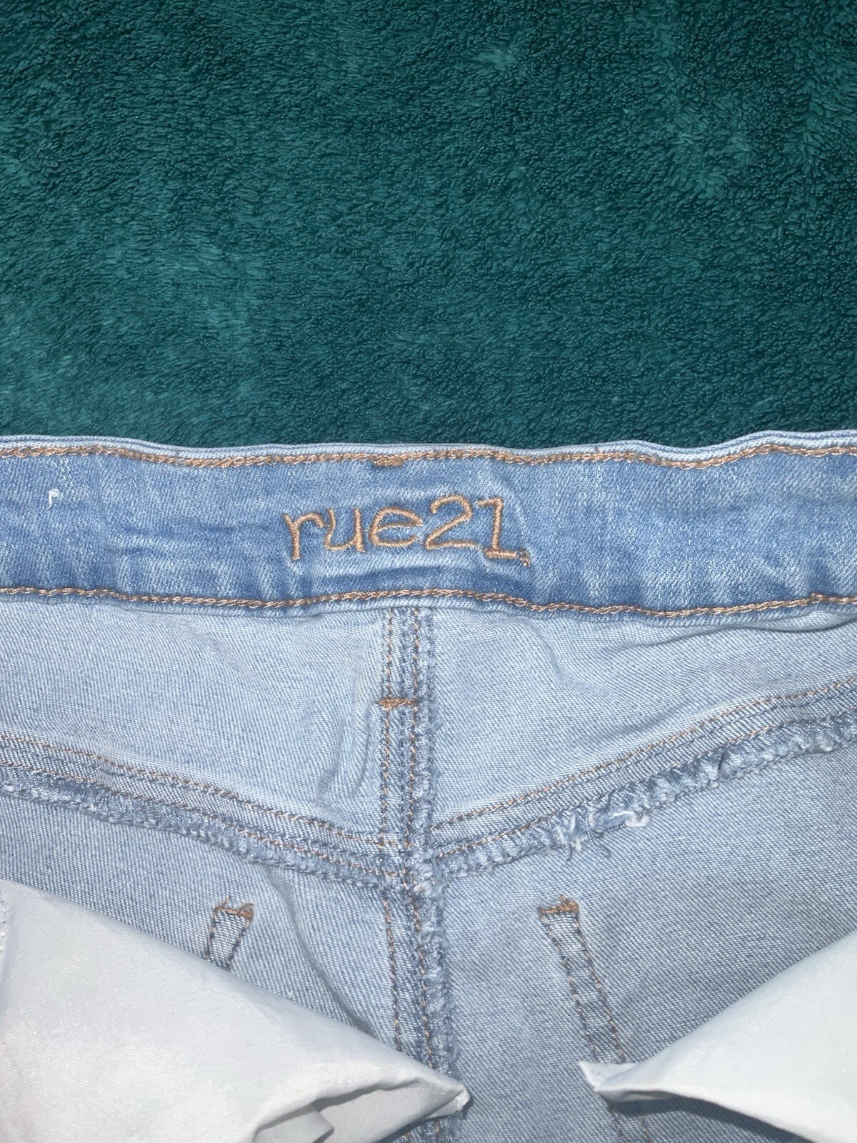 - Rue 21 Womans Jeans Light Wash Distressed Denim Mid Rise Jegging Size 12