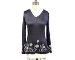 Ruffians VTG 1970s Metallic Knit Top Black Blue Silver Faux Pearl Disco Glam M