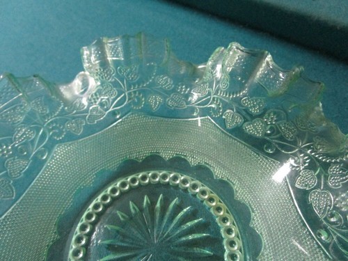 RUFFLED BORDER LEAVES GREEN BOWL 2 1/4 X 9"? [GL4]