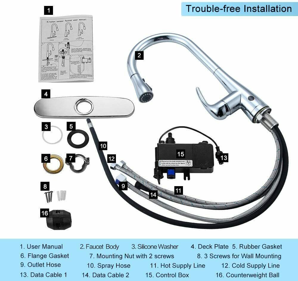 Easy installation: one integral control box which is waterproof contains battery pack and with patented quick connection on it makes the sensor faucet very easy to install and uninstall (4AA battery not included), designed to be installed through 1 or 3 holes (deck plate included)
