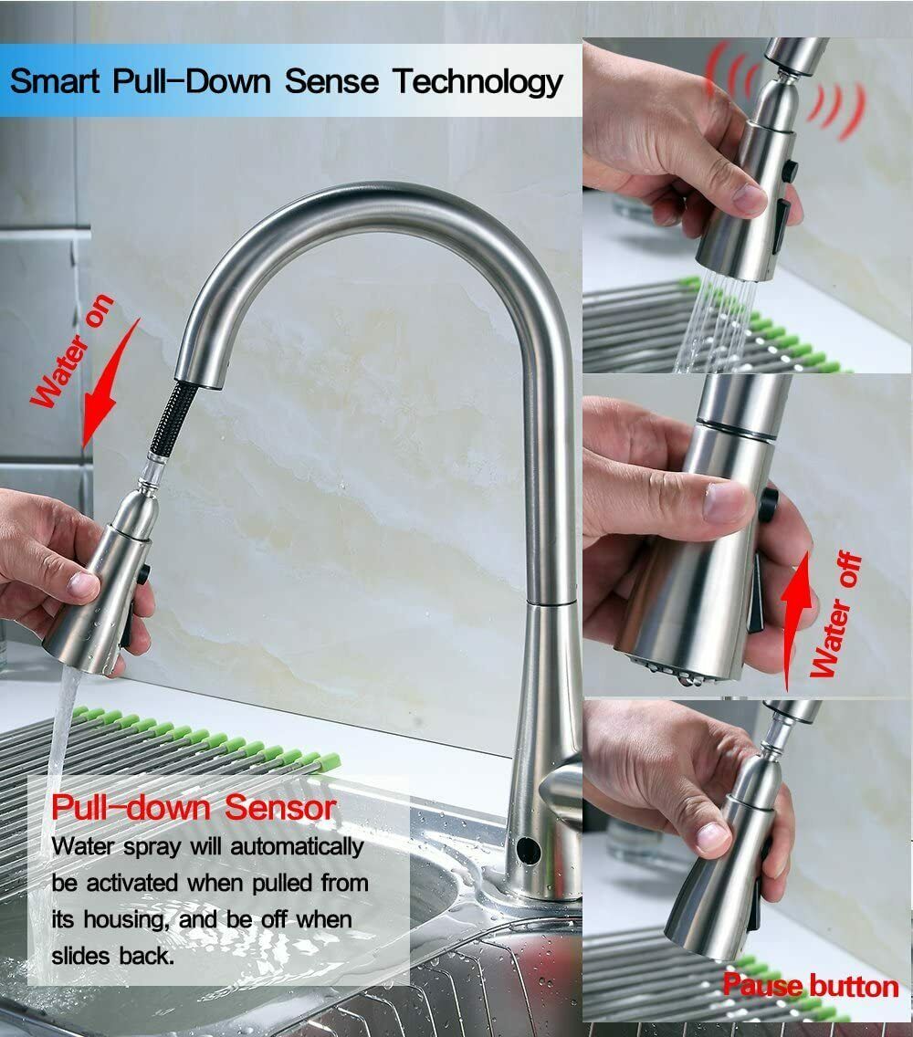 You are Buying a brand New And Factory Sealed RunFine RF412001 Modern High Arc Best Commercial Chrome Stainless Steel Spout Dual-Mode Sensor Kitchen Sink Faucet with Pull Down Sprayer by RUNFINE.
