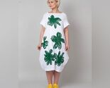 RUNDHOLZ DIP Laglenlook Green Print Handpainted Dress Size Small/ Cotton /featuring a statement handpainted flower motif on the front. Short raglan sleeves, pockets at side. White background with green print.