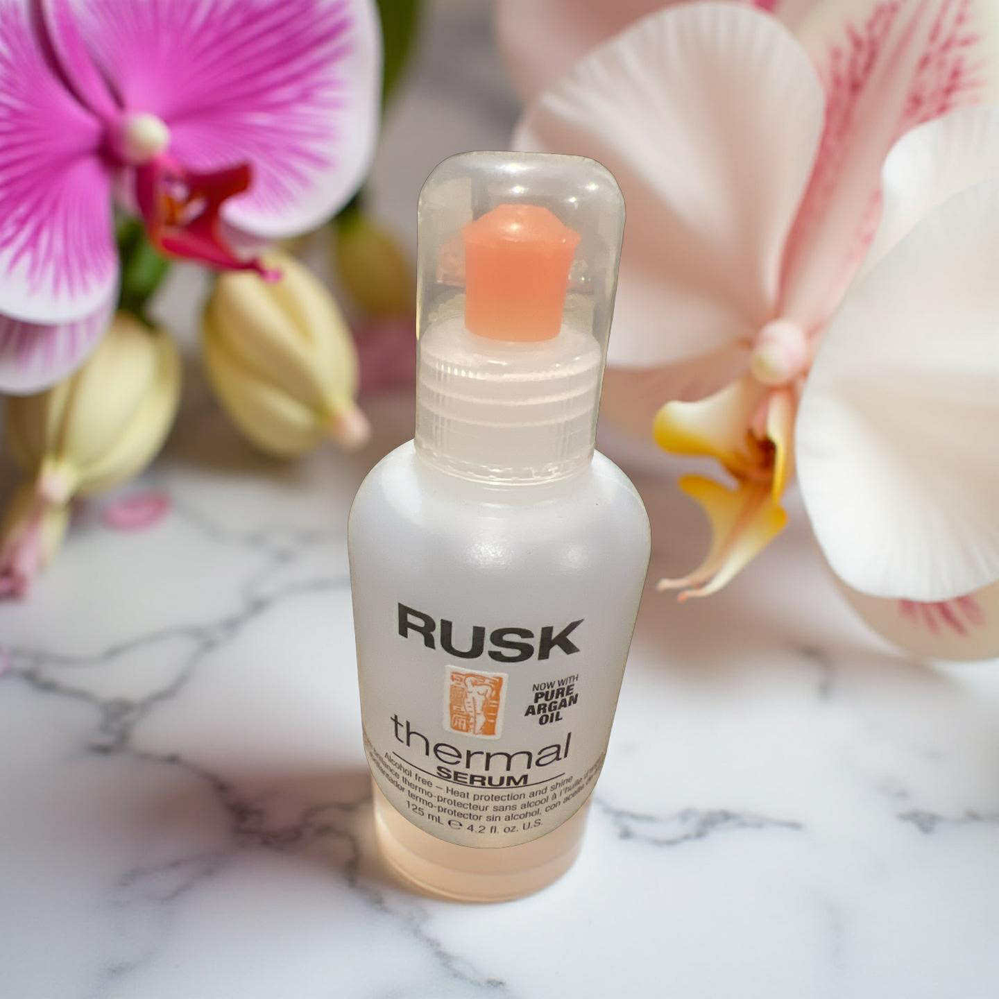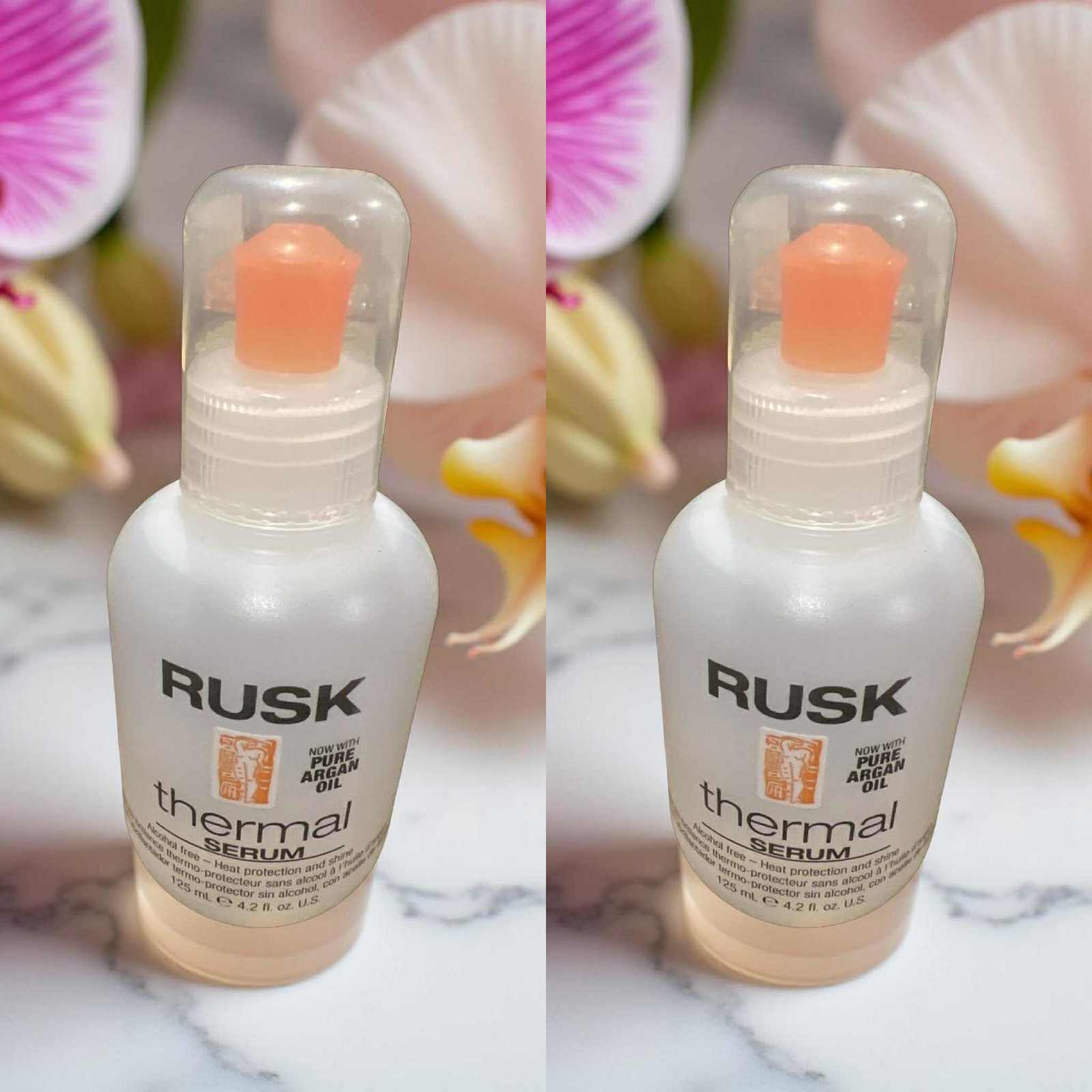 Rusk Design Thermal Serum, 4.2 oz Infused with argan oil, this alcohol-free serum delivers heat protection, frizz control, and brilliant shine for all hair types