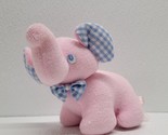 Russ Berrie Baby Pink Elephant Plush Rattle Terry Cloth Blue Ears, Eyes Bow. Images show actual plush that will ship.