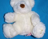 Russ Berrie Believe Cross Foot Teddy Bear 8" White Plush Brown Nose Soft 20180