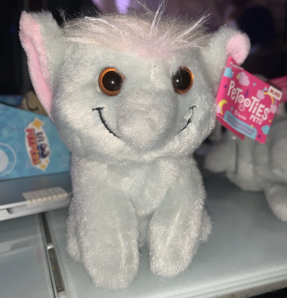 Meet Gordo the Pukwidgie from Russ Petooties Pets Plush Series 17, a charming addition to any stuffed animal collection. This mini friend, measuring under 6 inches, is a delightful representation of the whimsical Pukwidgie character, featuring a soft gray color that makes it a cozy companion for both kids and adults alike.
