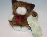 Russ Berrie, Plush, Itty Bitty Kitties, Approx 3.5 inch, Kitten, Brown, Tan, White, Tabby Cat, Red Bow, Mini, Soft Toy, NEW with Swing Tag, Seam/Tush Tag Intact, Plastic Eyes and Sewn Nose, Felt Ears