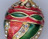 Russische Faberge Kunst Ei Anhanger Von Rot,Grün Und Gold Wirbel W / Klar Strass